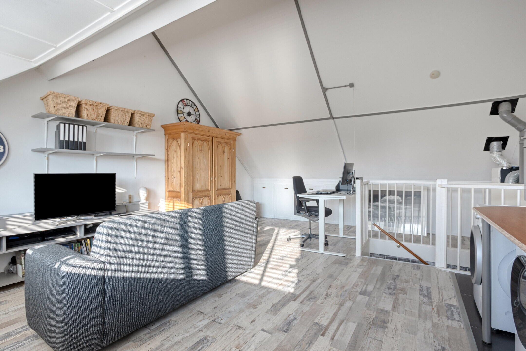 Tweede verdieping: grote open zolderetage met multifunctionele mogelijkheden. Werkplekken, slaapkamers en opbergmogelijkheden te over. Thans ingericht als één open ruimte met grote dakkapel, opstelling van de cv-ketel en de aansluiting van het witgoed.
