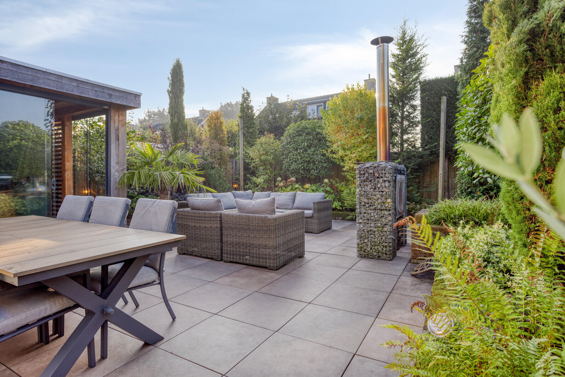 Zowel de voor- als achtertuin is onder architectuur aangelegd en in complete synergie met de woning. De beplanting, het straatwerk en het lijnenspel klopt als een bus. En vergeet niet de luxe tuinkamer die dienst doet als overdekt terras en buitenkeuken; deze is zelfs van binnenuit via de garage bereikbaar. De achtertuin ligt gunstig op het zuidoosten en biedt ultieme privacy.